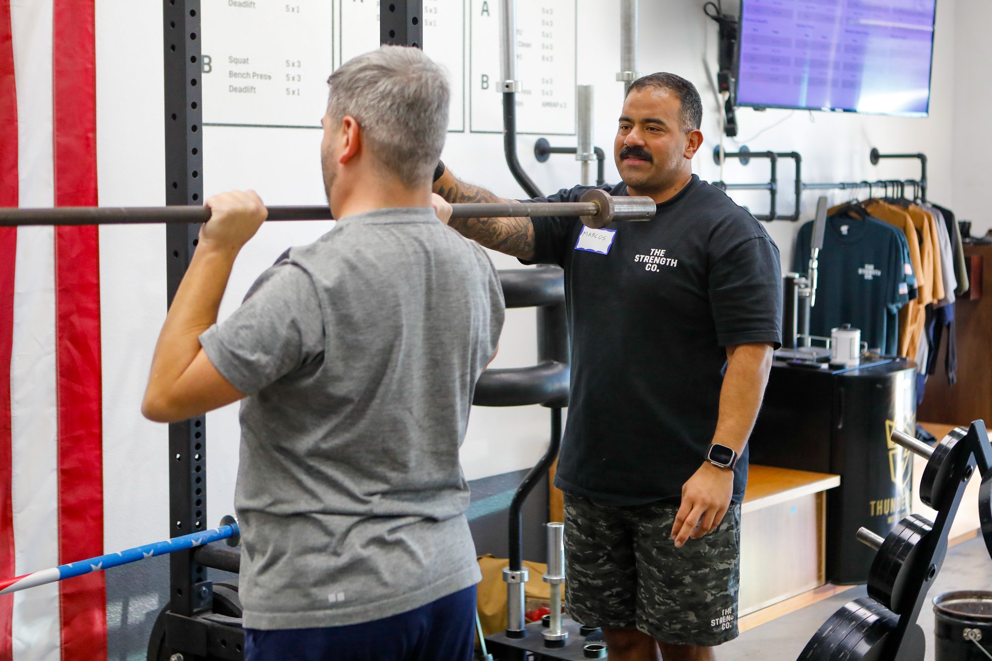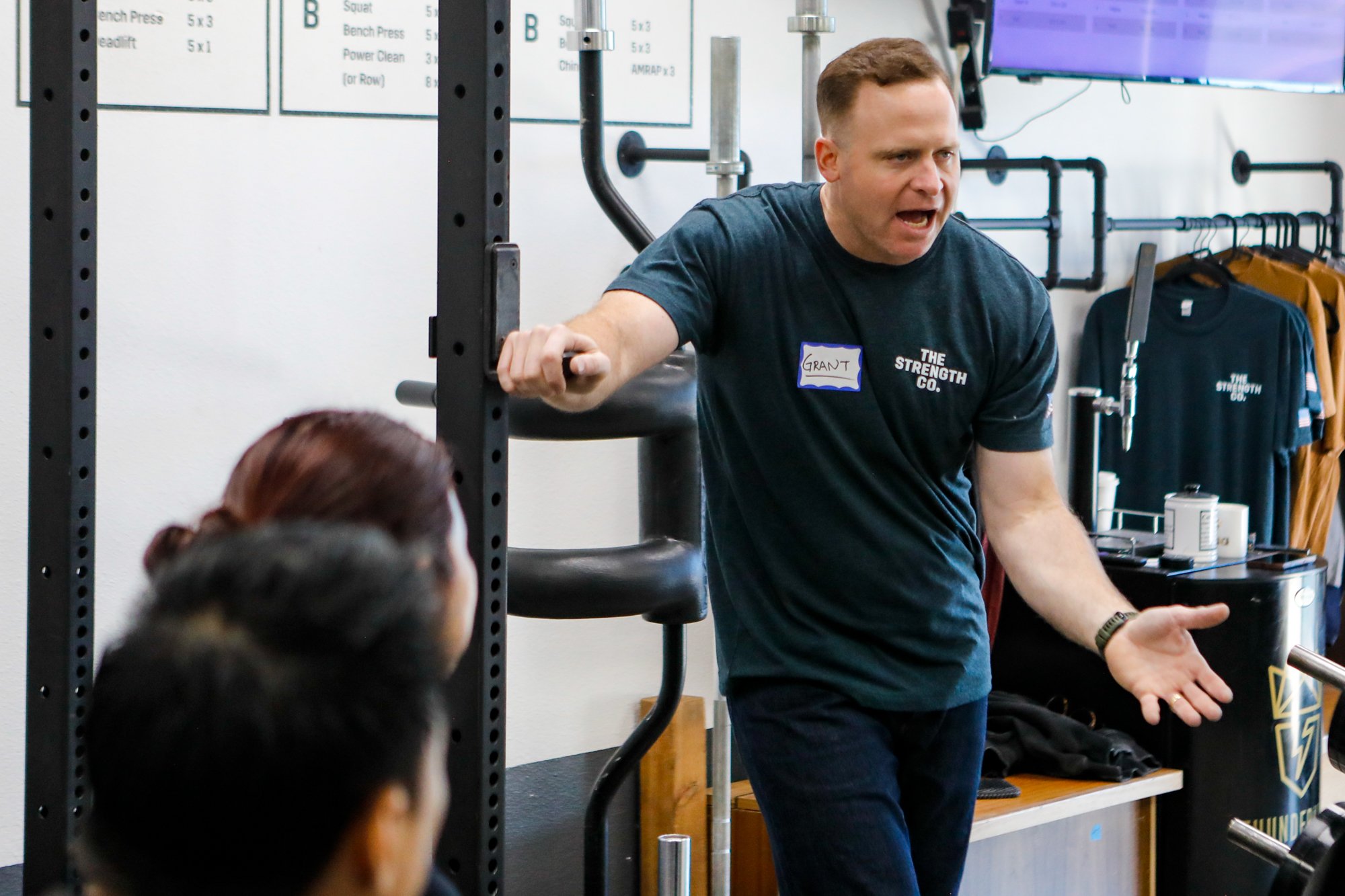 This page is dedicated to the strength building community at The Strength Co in Costa Mesa, California. This gym is a Starting Strength gym and follows Mark Rippetoe's strength building methodology. The gym is owned and operated by head coach Grant Broggi (point here for a link to the gym's website).